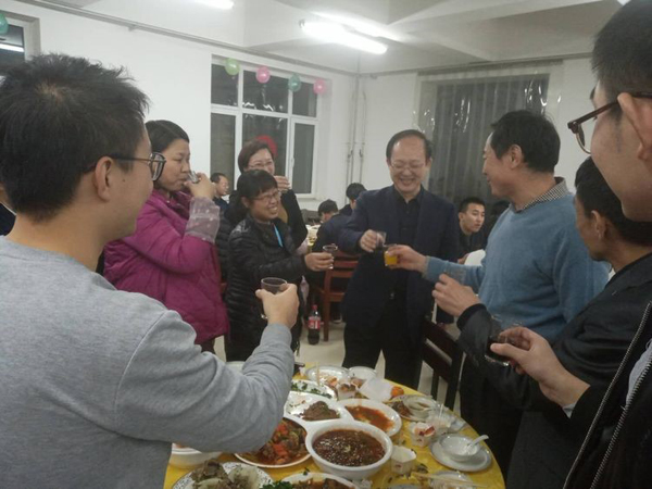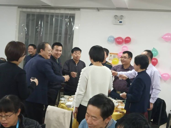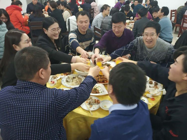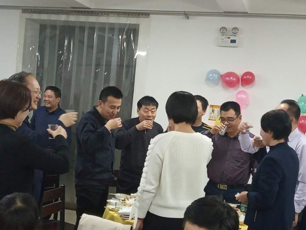 銷售內(nèi)務(wù)部李蒙蒙介紹自己的燒茄子,小編疏忽,只留下一張主廚的精彩發(fā)揮照 ◆ 相互敬酒 同事,職工朋友們相互敬酒,場面堪稱宏偉壯觀啊