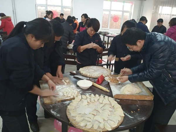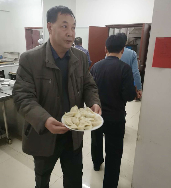 張永華總,大化來的高級高管,雖然膝蓋疼痛,但是為咱們員工端起餃子來,活力十足,一下年輕20歲。
