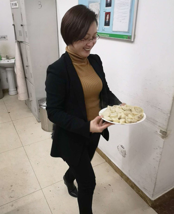 梁玉勤 設(shè)備副總 現(xiàn)在高新區(qū)負(fù)責(zé)新項(xiàng)目的建設(shè),率先沖到廚房里給大家端餃子?磥砣巳缙涿_實(shí)很勤勞啊