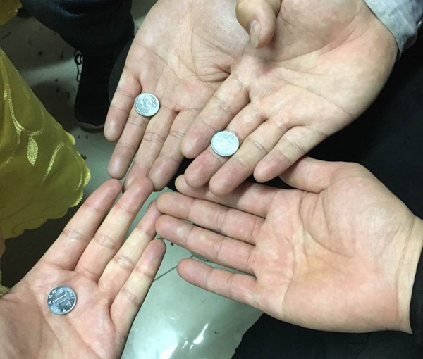 接下來進(jìn)入一發(fā)不可收拾的環(huán)節(jié),包餃子的時(shí)候,活動籌備組特意準(zhǔn)備30多個(gè)硬幣放在餃子里,吃到硬幣的幸運(yùn)職工小伙伴們可以兌換獎金。1毛硬幣兌換10元,5毛硬幣兌換50元。