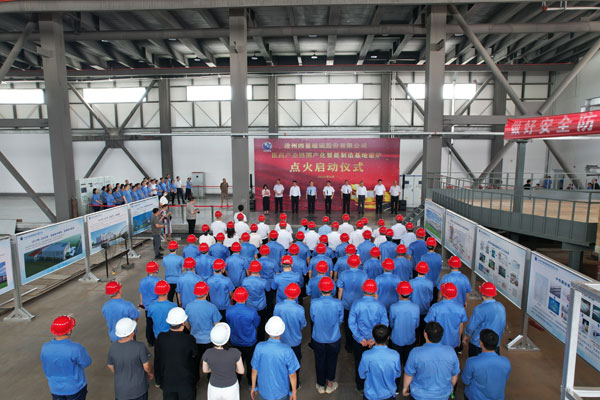 滄州市政府副秘書長徐超、滄州市工信局黨組書記、局長孫西讓、滄州高新區(qū)黨工委副書記、管委會主任夏軍等領(lǐng)導出席點火啟動儀式,董事長王煥一現(xiàn)場致辭。滄州市及高新區(qū)主管部門負責同志、制藥行業(yè)的同仁以及公司建設團隊、營銷團隊、職工代表共同見證了這一重要時刻。儀式由滄州高新區(qū)黨工委委員、管委會副主任趙春榮主持。