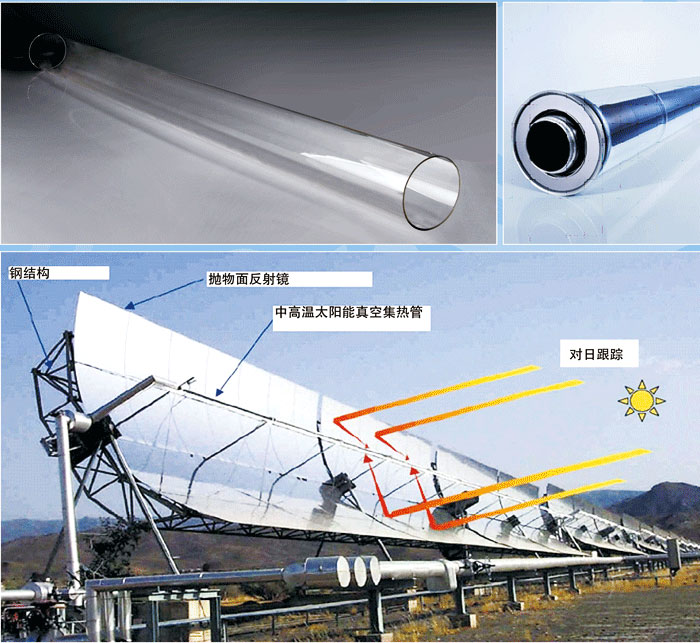 槽式太陽能熱發(fā)電系統(tǒng)的核心部分就是聚光集熱系統(tǒng),而聚光集熱系統(tǒng)的核心部件就是中高溫太陽能真空集熱管。 |